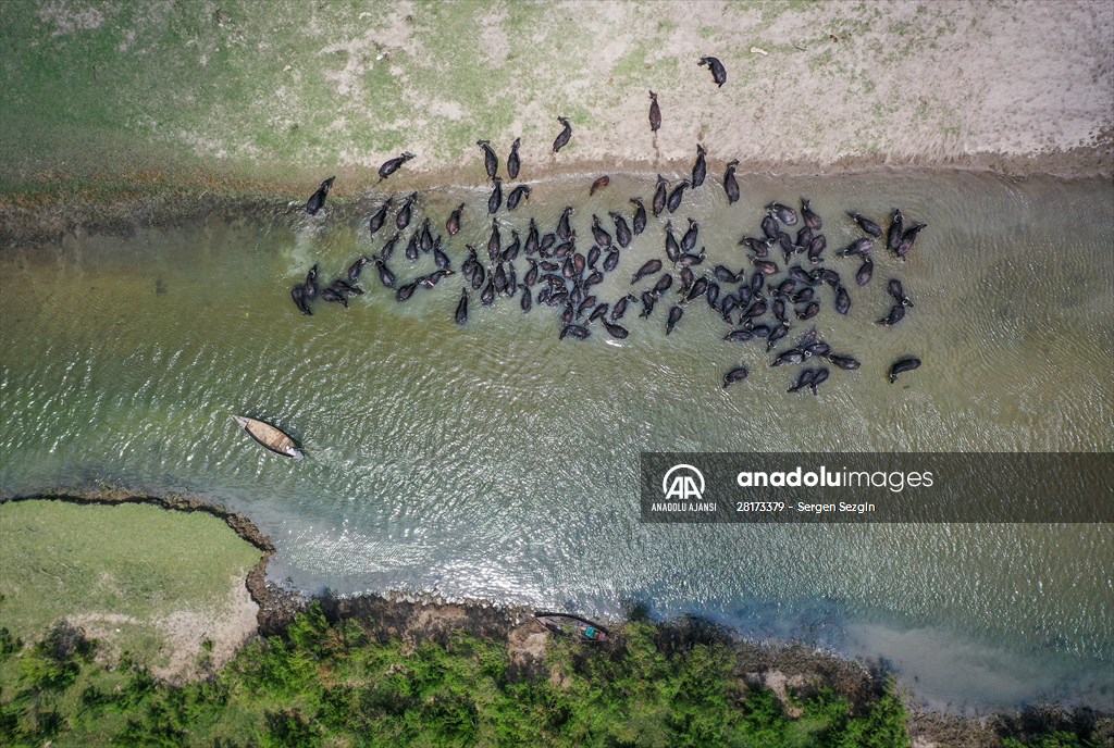 Sürü halinde suya ilerleyen mandaların görüntüsü ise Afrika’nın vahşi doğasını andırıyor. Çayı ya da gölü aşarak sürü halinde ilerleyen mandalar, bufaloların göç yolculuklarını hatırlatan sahnelerle bölgeye özgü görsel bir şölen sunuyor.