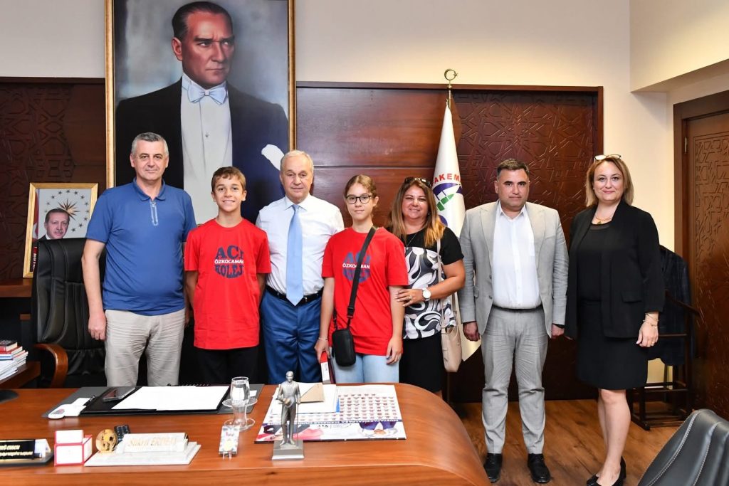 Mustafakemalpaşa’nın eğitimdeki gururu gençler, Başkan Şükrü Erdem tarafından ödüllendirildi.Yükseköğretim Kurumları Sınavı’nda (YKS) Türkiye 552’ncisi olan Beyza Sarı, Liselere Geçiş Sistemi’nde (LGS) 2025 İlçe Birincisi olan Çağan Sincan ve İlçe Üçüncüsü Zeynep Balatlı, Belediye Başkanı Şükrü Erdem’in makamında ağırlandı.