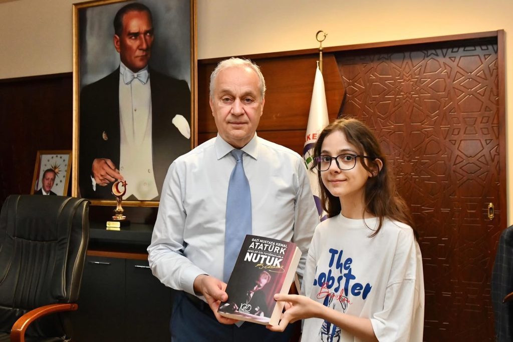 Ziyaret sırasında öğrencilerin başarılarını takdir eden Başkan Erdem, gençlere Gazi Mustafa Kemal Atatürk’ün eşsiz eseri “Nutuk”u armağan etti. Bu anlamlı hediye, hem bir tebrik hem de tarihsel sorumluluk bilincinin sembolü oldu.