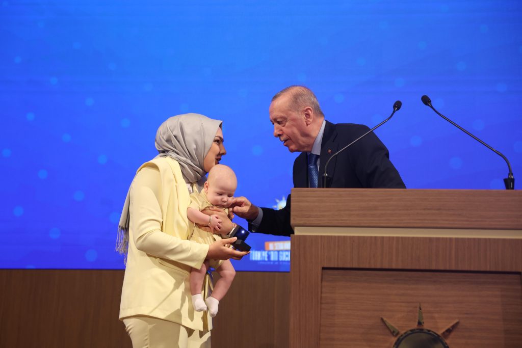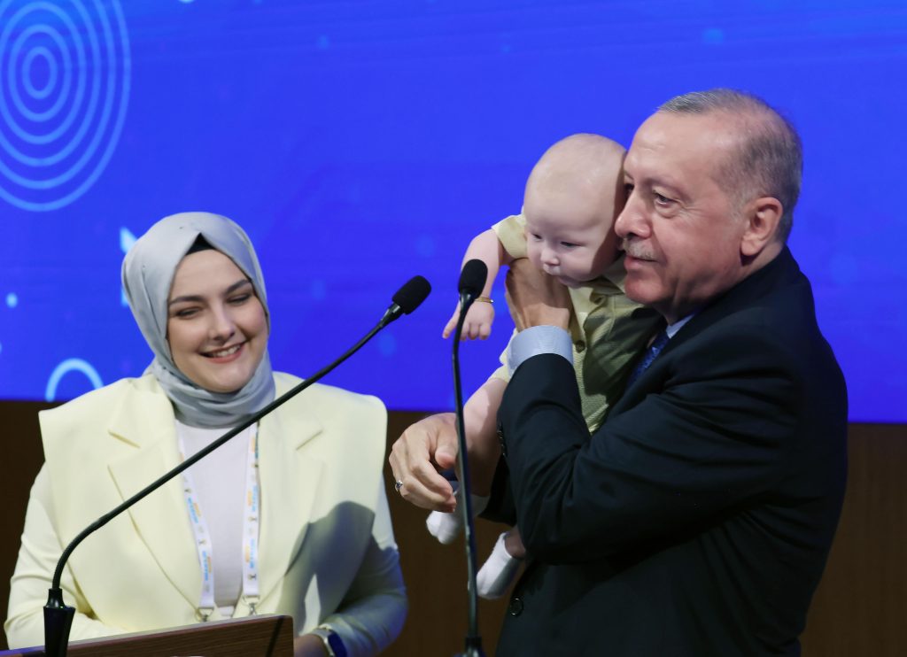 Cumhurbaşkanı Recep Tayyip Erdoğan, kapanış konuşmasına başlamadan önce Güler ailesini sahneye davet etti. Minik Ömer Asaf’ı gören Erdoğan, “Ne kadarlık bu?” diye sorarak bebeği kucağına aldı. Sevgi dolu bu an, salondaki davetlilerden büyük alkış toplarken, objektiflere de yansıdı. Erdoğan, Ömer Asaf’a küçük bir hediye de takdim etti.