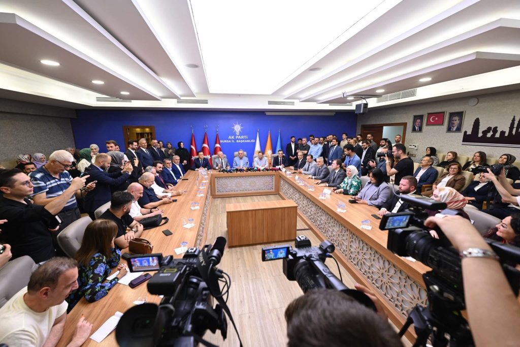 AK Parti Bursa İl Başkanlığı’nda düzenlenen buluşmada, Genel Başkan Yardımcısı Hayati Yazıcı, İl Başkanı Davut Gürkan, milletvekilleri, ilçe belediye başkanları, il yönetim kurulu üyeleri, belediye meclis üyeleri ve ilçe başkanları tarafından karşılandı.