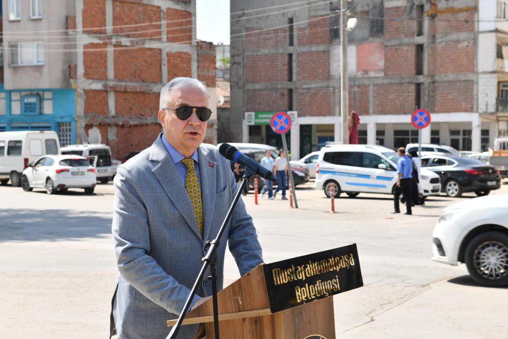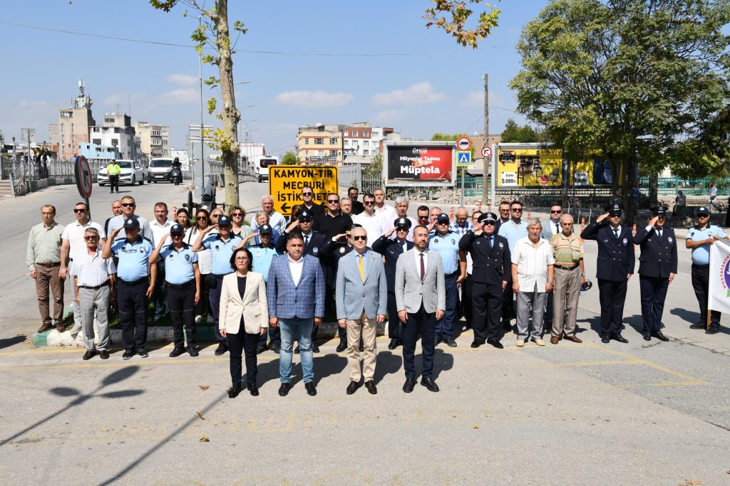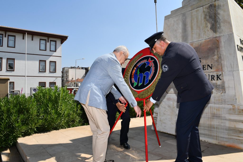 Belediye Meydanı’nda bando eşliğinde yürüyüş gerçekleştiren zabıta personeli, Cumhurluk Alanı’na gelerek törene katıldı. Program; saygı duruşu ve İstiklal Marşı’nın ardından çelenk sunumu ile devam etti.