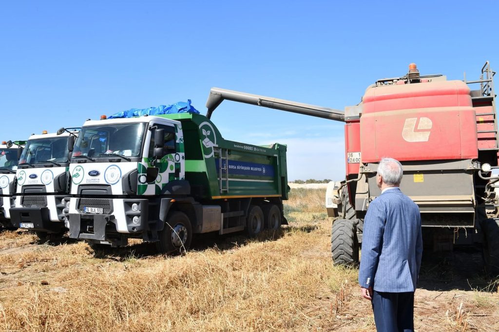 Çiftçi Malları Koruma Başkanlığı ve Bursa Büyükşehir Belediyesi Tarım A.Ş. iş birliğiyle yürütülen üretim çalışmalarının meyvelerini görmekten memnuniyet duyduğunu belirten Başkan Erdem, “Belediyemize ait toprakları bereketlendirmek için çıktığımız bu yolda ilk ayçiçeği hasadımızı gerçekleştiriyoruz. Üretim vizyonumuzu sürdüreceğiz” dedi.