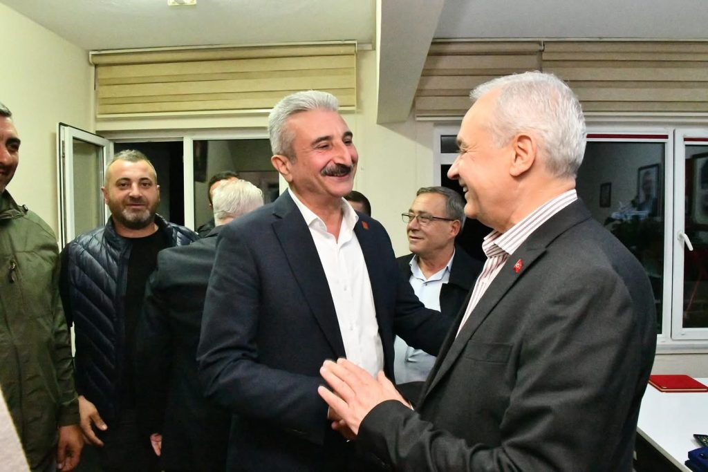 Cumhuriyet Halk Partisi (CHP) Bursa İl Başkanı Nihat Yeşiltaş, güven tazeleyerek yeniden göreve seçilen CHP Mustafakemalpaşa İlçe Başkanı Gökhan Demir’e hayırlı olsun ziyaretinde bulundu.