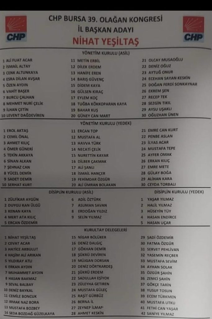 CHP Bursa İl Başkanı Nihat Yeşiltaş ve Büyükşehir Belediye Başkanı Mustafa Bozbey’in ev sahipliğinde düzenlenen kongreye, CHP Grup Başkanvekili ve Mersin Milletvekili Ali Mahir Başarırda katıldı.