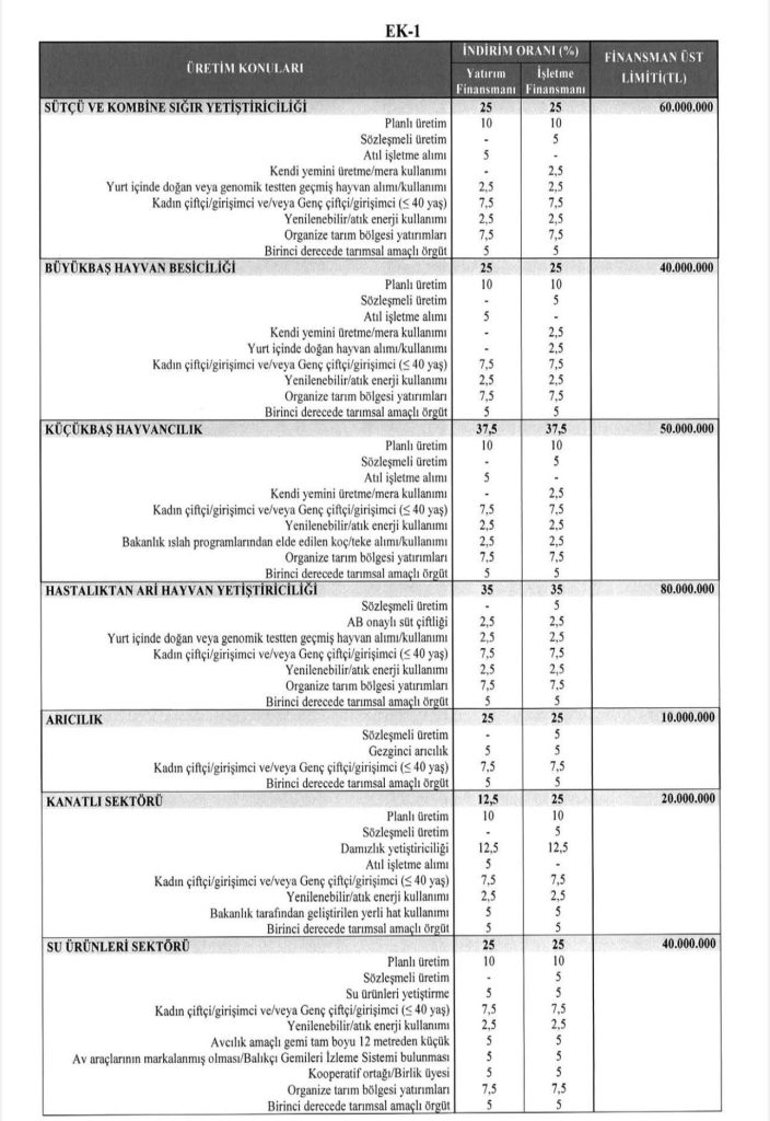 Karara göre; sütçü ve kombine sığır yetiştiriciliğinde daha önce yüzde 50 olarak uygulanan faiz indirimi, 2026 yılı için yüzde 25 seviyesine çekildi. Benzer şekilde birçok üretim kaleminde de faiz desteği oranı düşürüldü.