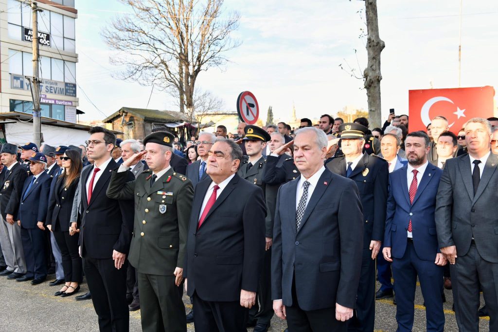 Cumhurluk Alanı’nda ilk olarak Kaymakamlık, ardından Garnizon Komutanlığı ve Belediye Başkanlığı tarafından çelenk sunulmasıyla başlayan anma törenine; Kaymakam Mehmet Okur, Mustafakemalpaşa Belediye Başkanı Şükrü Erdem, siyasi parti ve sivil toplum kuruluşlarının başkanları ile çok sayıda vatandaş katıldı.