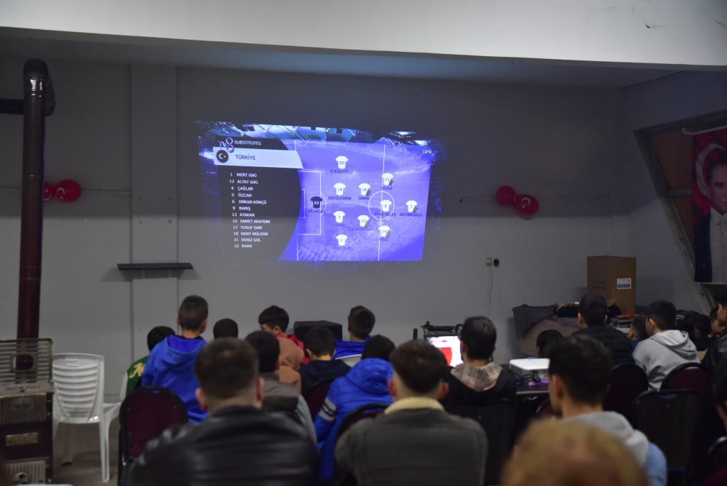 Akar Spor Kulübü binası, maç öncesinde gençler tarafından Türk bayrakları ve kırmızı-beyaz süslemelerle donatıldı. Salon, dev ekrana karşı hazırlanan oturma düzeniyle adeta küçük bir mahalle stadyumunu andırdı.