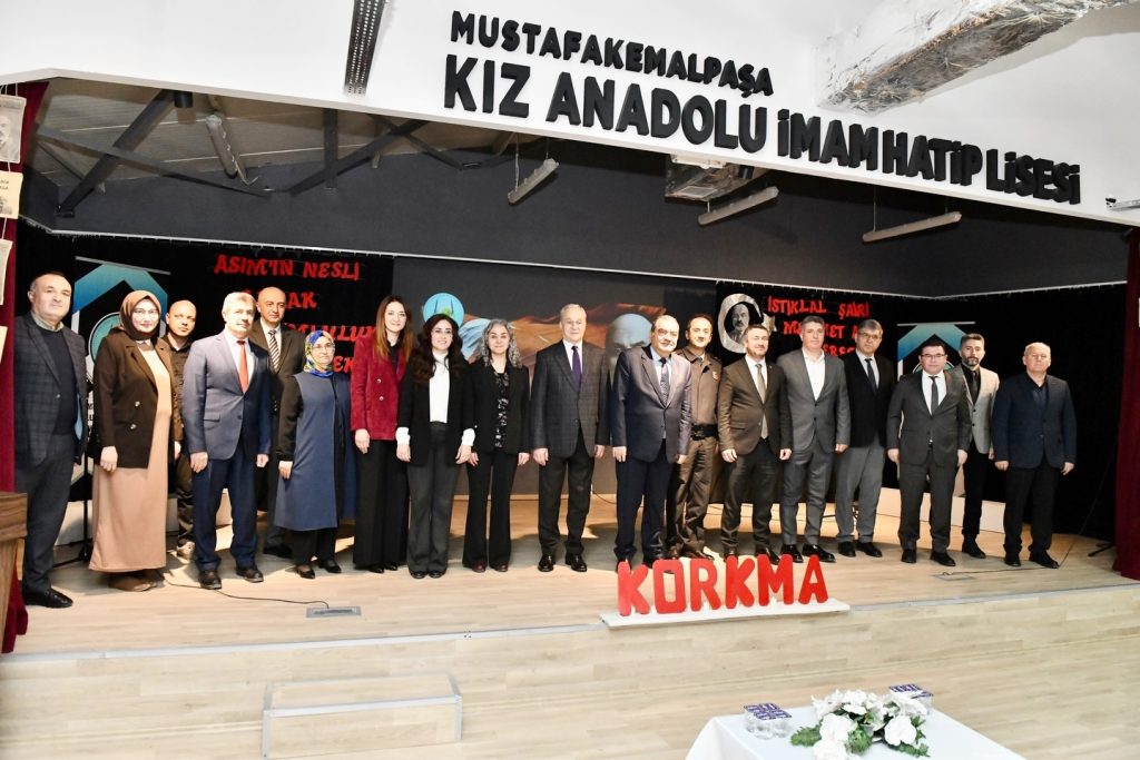 20-27 Aralık Mehmet Akif Ersoy’u Anma Haftası kapsamında gerçekleştirilen program, Kız Anadolu İmam Hatip Lisesi Fen ve Sosyal Bilimler Proje Okulu’nda yapıldı. Kız İHL Konferans Salonu’ndaki törene; Kaymakam Mehmet Okur, Belediye Başkanı Şükrü Erdem, Milli Eğitim Müdürü Veysel Çalık, Jandarma Komutanı Ütğm. Emre Kavak, kurum müdürleri, siyasi parti temsilcileri ve eğitim camiası katıldı.