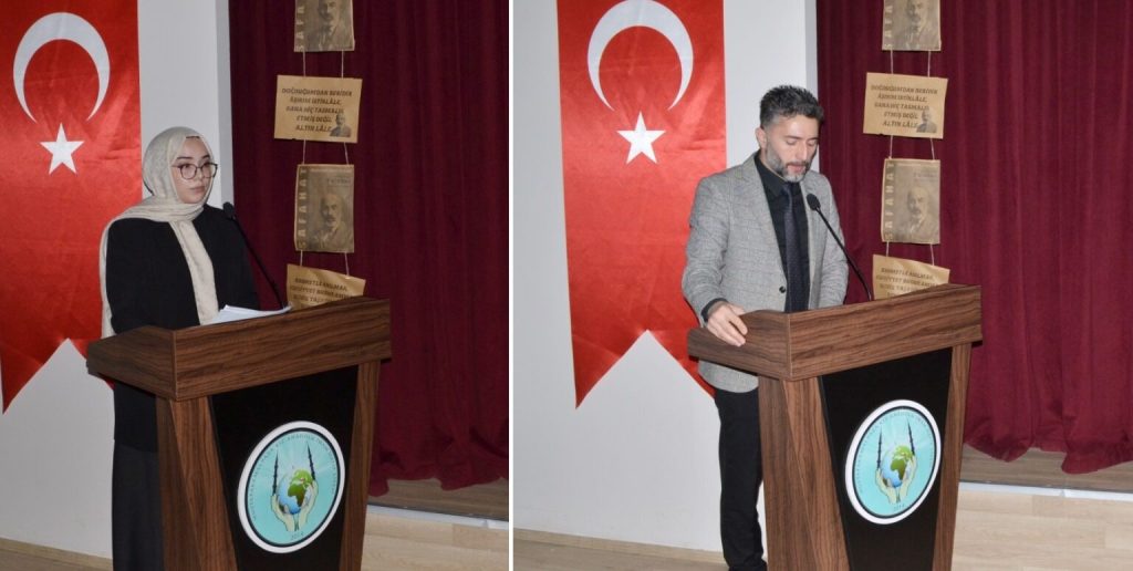 Günün anlam ve önemini belirten konuşmayı yapan Türk Dili ve Edebiyatı öğretmeni Mehmet Arı, Mehmet Akif Ersoy’un yaşamı boyunca milli şuurun diri tutulmasına büyük katkı sunduğunu ifade ederek, “Akif, sadece bir şair değil; inancıyla, duruşuyla ve fikirleriyle bu milletin vicdanı olmuştur” dedi.