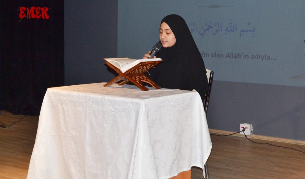 İstiklal Harbi yıllarında gösterdiği yüksek seciyesi, inancı ve azmiyle Türk milletine umut olan Mehmet Akif Ersoy’un anıldığı program, saygı duruşu ve İstiklal Marşı’nın okunmasıyla başladı. Ardından Kız İHL 7/A sınıfı öğrencisi Zümra Batır tarafından Kur’an-ı Kerim tilaveti gerçekleştirildi.