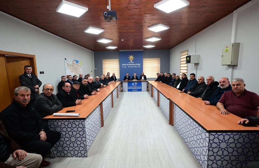 AK Parti Bursa İl Başkanı Davut Gürkan, Mustafakemalpaşa’da mahalle muhtarlarıyla bir araya gelerek istişare toplantısı gerçekleştirdi. Toplantıda muhtarların talep ve önerileri dinlenirken, yerel hizmetlerin daha etkin yürütülmesi adına karşılıklı görüş alışverişinde bulunuldu.