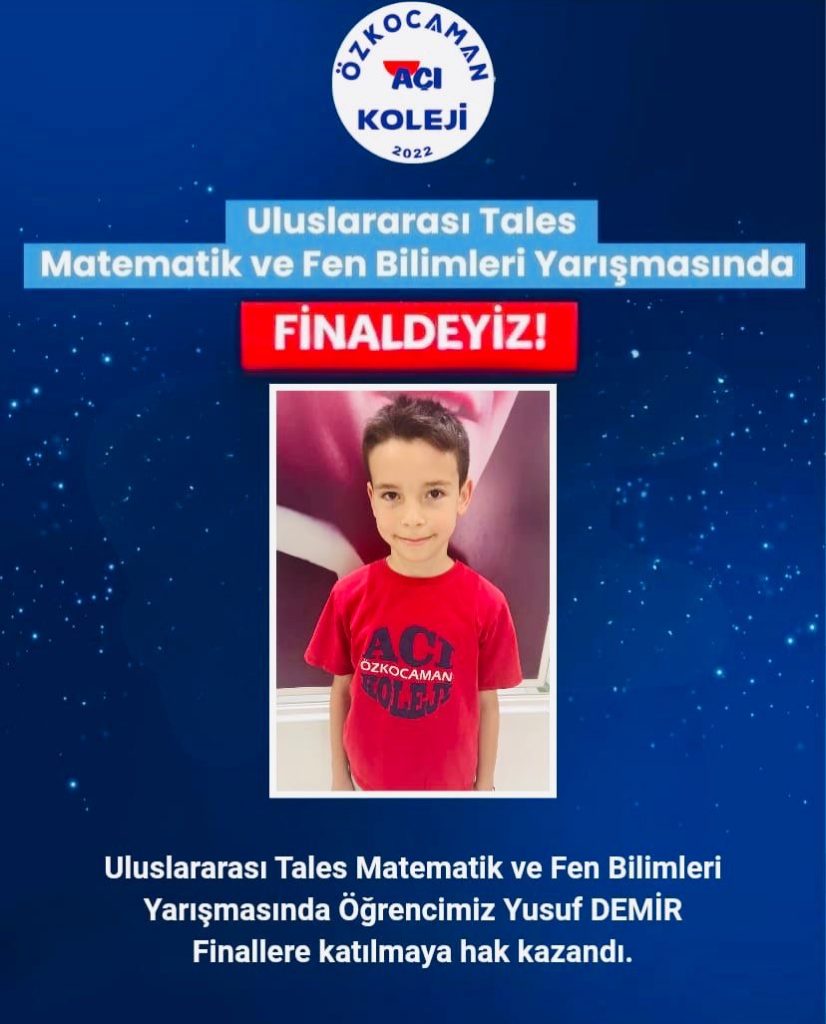 Geçtiğimiz yıl da aynı platformda önemli dereceler elde eden Özkocaman Açı Koleji öğrencileri, Mustafakemalpaşa’nın adını Türkiye çapında duyurmuştu. Bu yıl Yusuf Demir’in finale yükselmesi, okulun uluslararası başarı grafiğinin tesadüf değil, sürdürülebilir bir eğitim anlayışının sonucu olduğunu bir kez daha ortaya koydu.