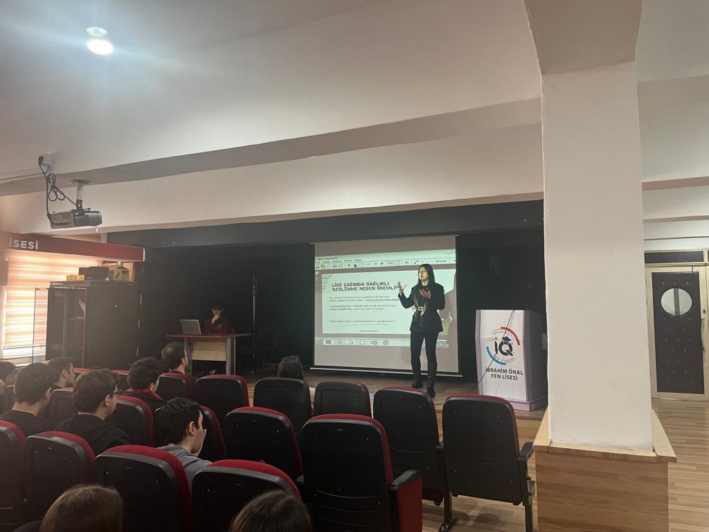 Söyleşide; dengeli ve düzenli beslenmenin ders başarısına olan katkısı vurgulanırken, fast food tüketiminin zararları, yeterli su içmenin önemi ve bağışıklık sistemini güçlendiren besinler hakkında da kapsamlı bilgiler paylaşıldı. Öğrenciler, günlük yaşamlarında uygulayabilecekleri sağlıklı alışkanlıklar konusunda bilinçlendirildi.