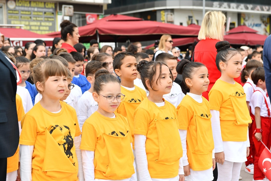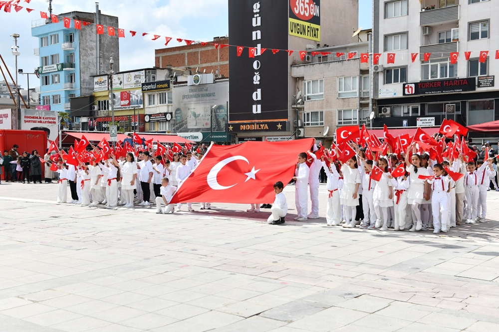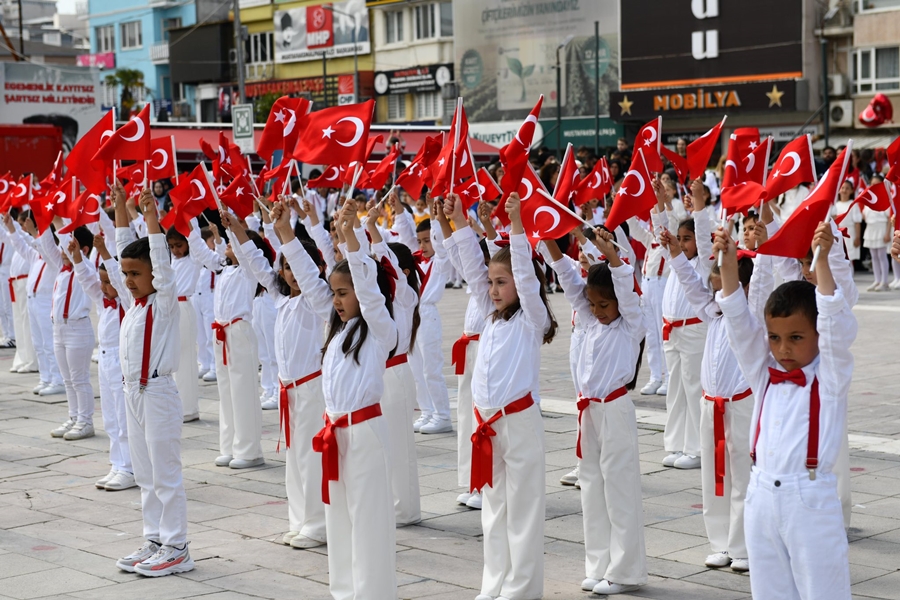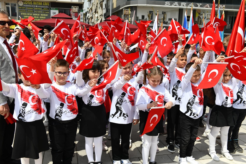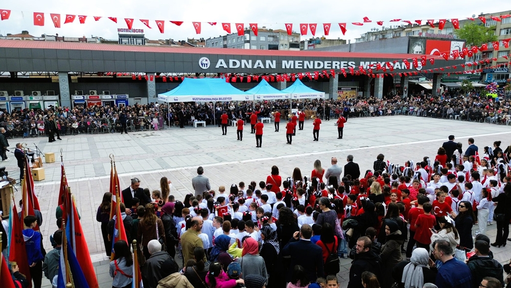 Ay yıldızlı bayraklarla süslenen meydanlarda gerçekleşen törenlerde, 7’den 70’e her yaştan vatandaş bir araya gelerek geleceğin teminatı çocukların mutluluğuna ortak oldu. Renkli görüntülere sahne olan etkinlikler, Mustafakemalpaşa’da unutulmaz bir bayram atmosferi oluşturdu.
